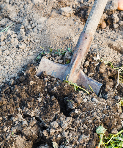 - Dig trenches for irrigation pipes and holes for posts and retaining walls.